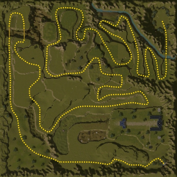 Zde je vyznačená cesta na konec červeného lesa ...